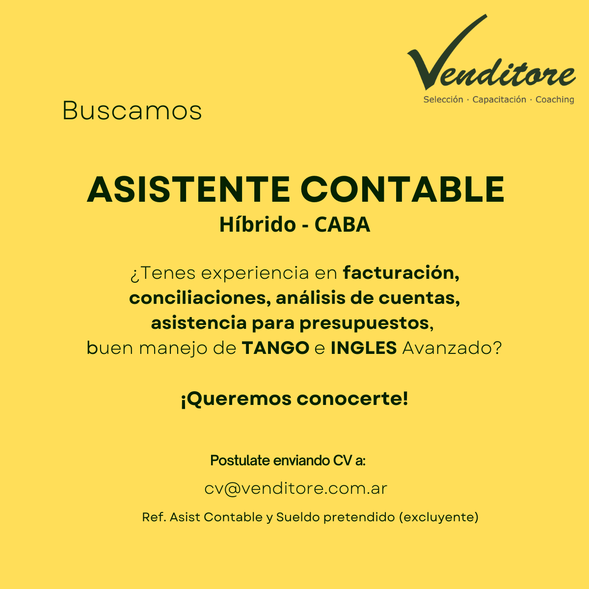 Buscamos para nuestro equipo un/a Asistente Administrativa/o Contable, que acredite cinco años de experiencia realizando las siguientes tareas: *Facturación *Asistencia en armado de presupuestos *Conciliaciones y Análisis de cuentas *Carga …